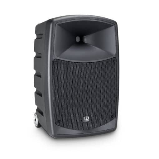 The LD Systems Roadbuddy 10 is an elegant solution for voice and music transmission on the go. The 2-way speaker with a 10″ custom woofer and a 1″ compression driver is operated with a rechargeable battery for up to 8 hours and is powered by a class D power amplifier with a highly efficient switching power supply and 480 watts of peak power.
